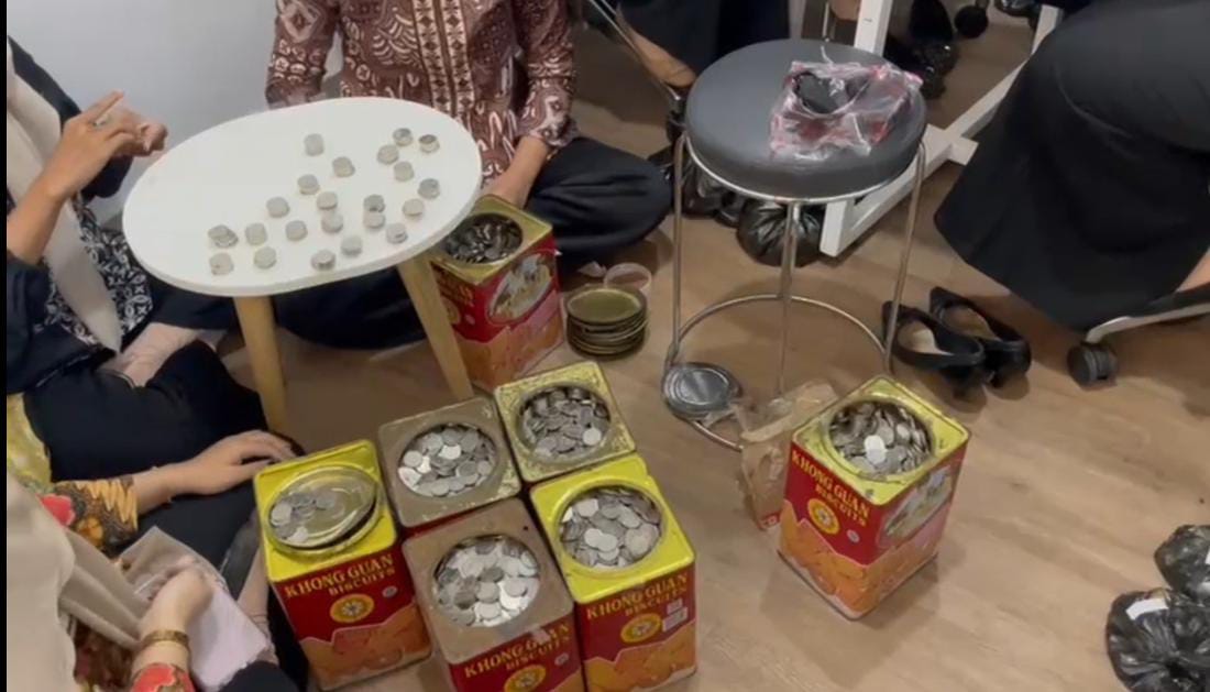 Proses penghitungan uang memakan waktu cukup lama hingga berjam-jam. Dari hasil penghitungan sementara, total tabungan pasangan ini diperkirakan mencapai hampir Rp55 juta, bahkan mendekati Rp60 juta.