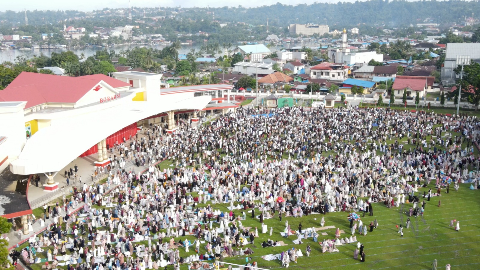 Ribuan umat Muslim memadati kawasan Ruang Terbuka Publik (RTP) Borarsi, Manokwari, Papua Barat, untuk melaksanakan Sholat Idul Fitri 1447 Hijriah pada Sabtu pagi, 21 Maret 2026.