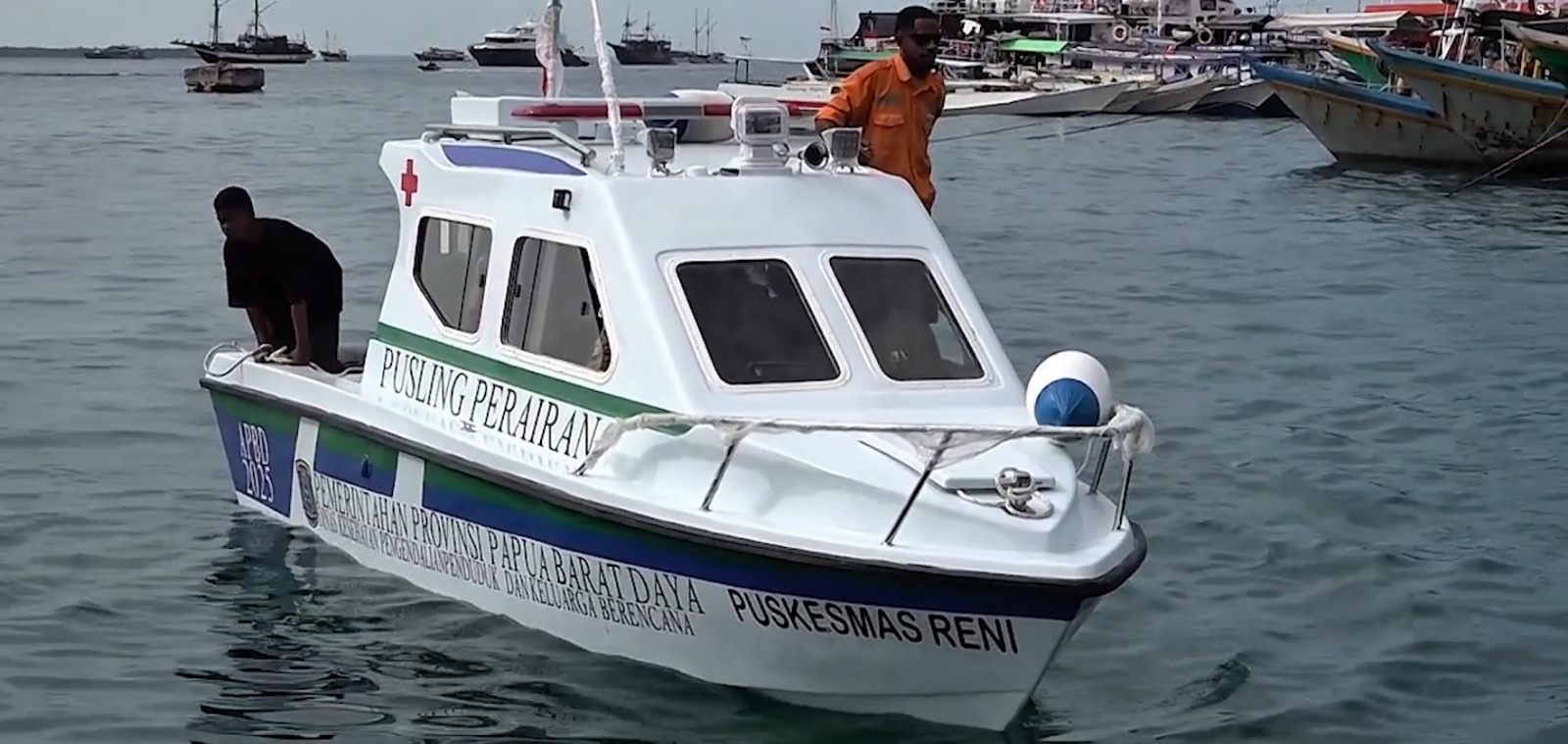 Gubernur Papua Barat Daya, Elisa Kambu, menyerahkan bantuan hibah tiga unit puskesmas keliling (pusling) air untuk mendukung pelayanan kesehatan di wilayah kepulauan. Penyerahan dilakukan di Dermaga Marina, Kota Sorong, pada Senin, 23 Februari 2026.
