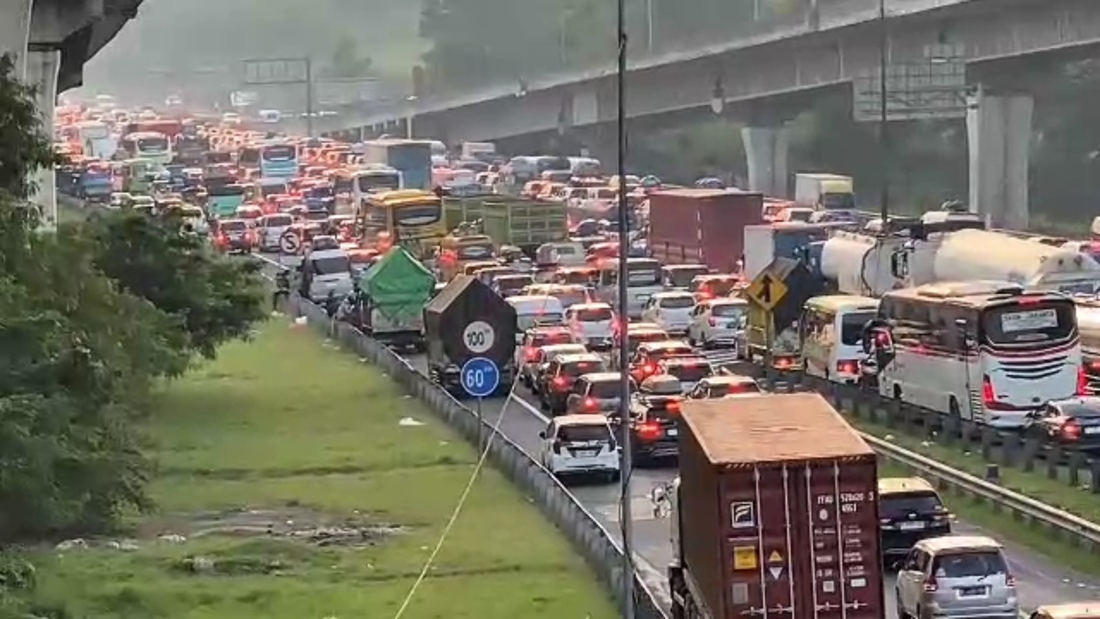 Kepadatan terjadi akibat bertemunya arus kendaraan dari Tol Layang Mohammad Bin Zayed (MBZ) dengan jalur tol bawah. Laju kendaraan pun melambat dengan kecepatan berkisar 10 hingga 20 kilometer per jam.