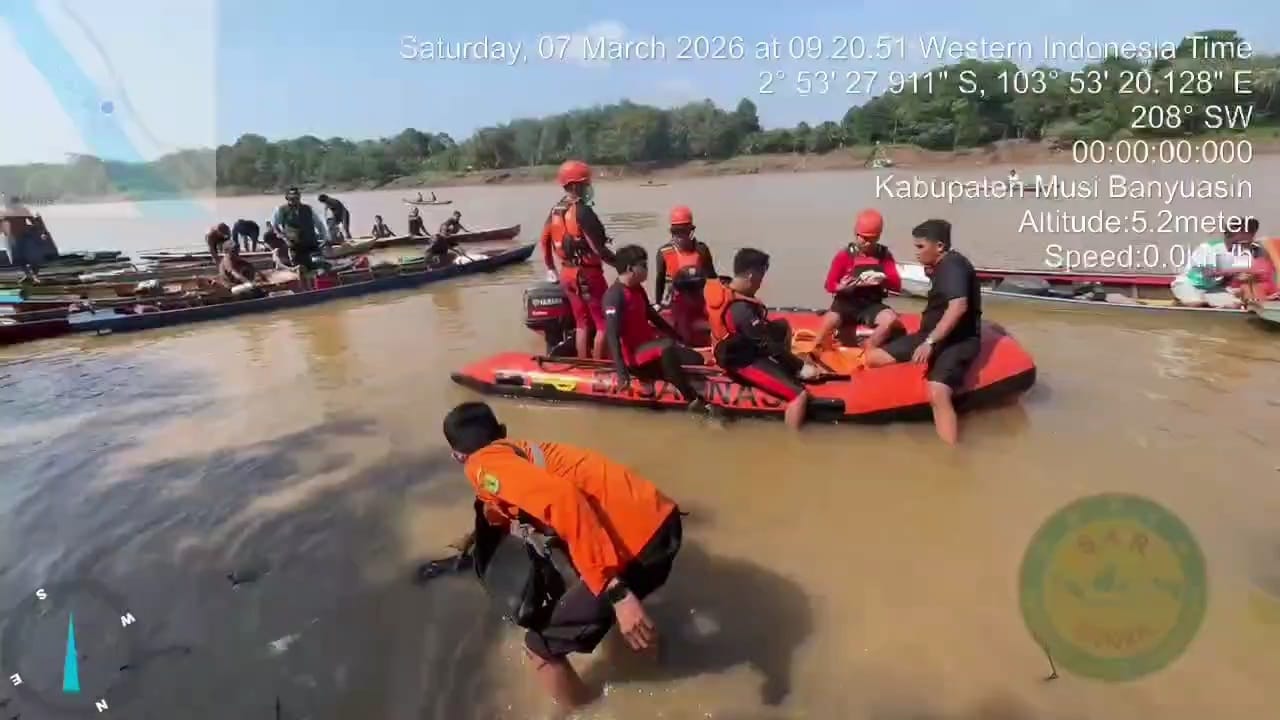 Tim gabungan yang terdiri dari BPBD Kabupaten Musi Banyuasin, Basarnas, TNI, Polri, serta unsur pemerintah kecamatan dan masyarakat berhasil menemukan korban yang diduga tenggelam di Sungai Musi, Sabtu, 7 Maret 2026.