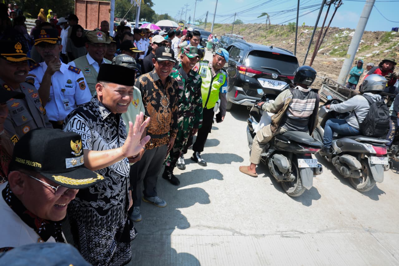 Para warga yang terdampak langsung akibat tanggul yang jebol pada 15 Februari 2026 lalu, juga menyambut antusias pembukaan operasional jalan dan tanggul sungai.