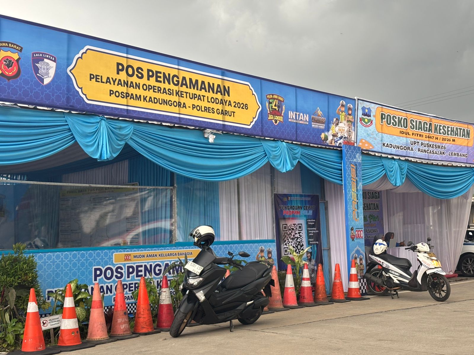 Foto: Situasi Posko Pengamanan Pelayanan Operasi Ketupat Lodaya 2026 Pospam Kadungora-Polres Garut, Kabupaten Garut, Sabtu, 14 Maret 2026. (TVRINews/ Lidya Thalia. S)