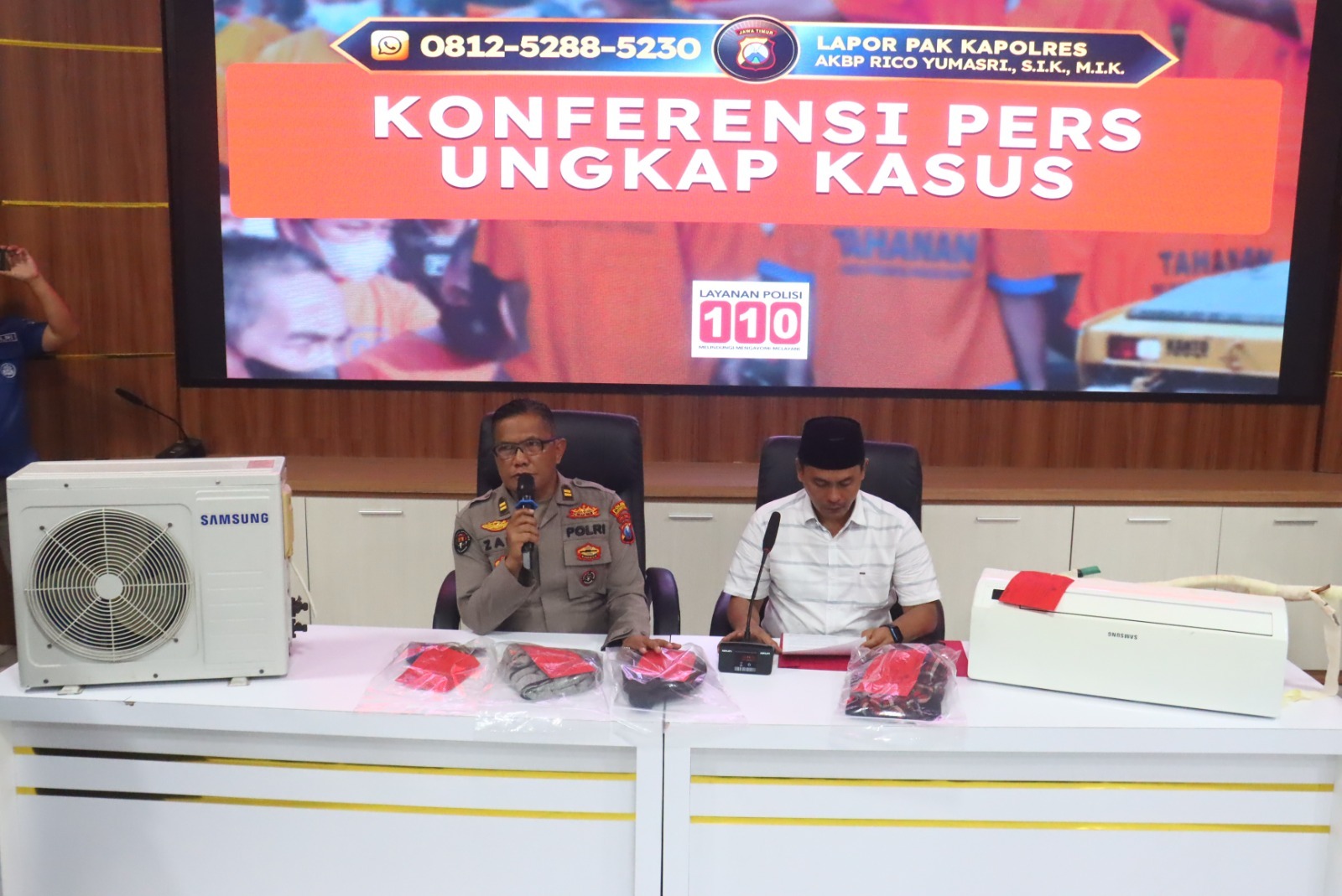 Dari penangkapan ini, Polisi menyita 1 unit AC Samsung ½ PK (indoor dan outdoor), sepeda motor Honda CB150R yang digunakan saat beraksi, serta sejumlah alat seperti obeng dan tang.