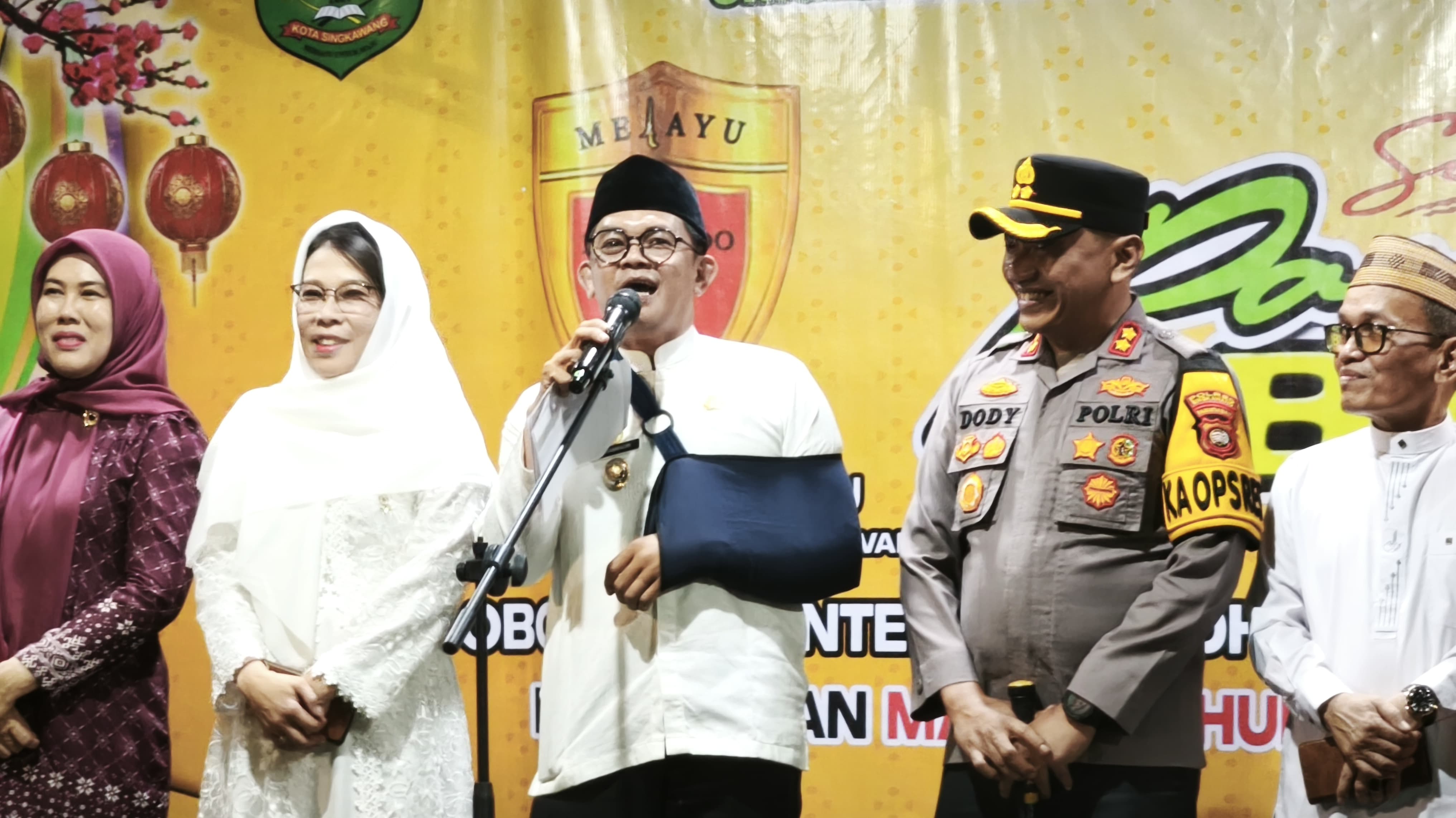 Atas nama Pemerintah Kota Singkawang, Muhammadin menyampaikan ucapan selamat menyambut Ramadan 1447 Hijriah sekaligus selamat merayakan Tahun Baru Imlek. Ia berharap cahaya obor dan lampion menjadi penerang perjalanan masyarakat menuju Singkawang yang lebih religius, harmonis, dan sejahtera.