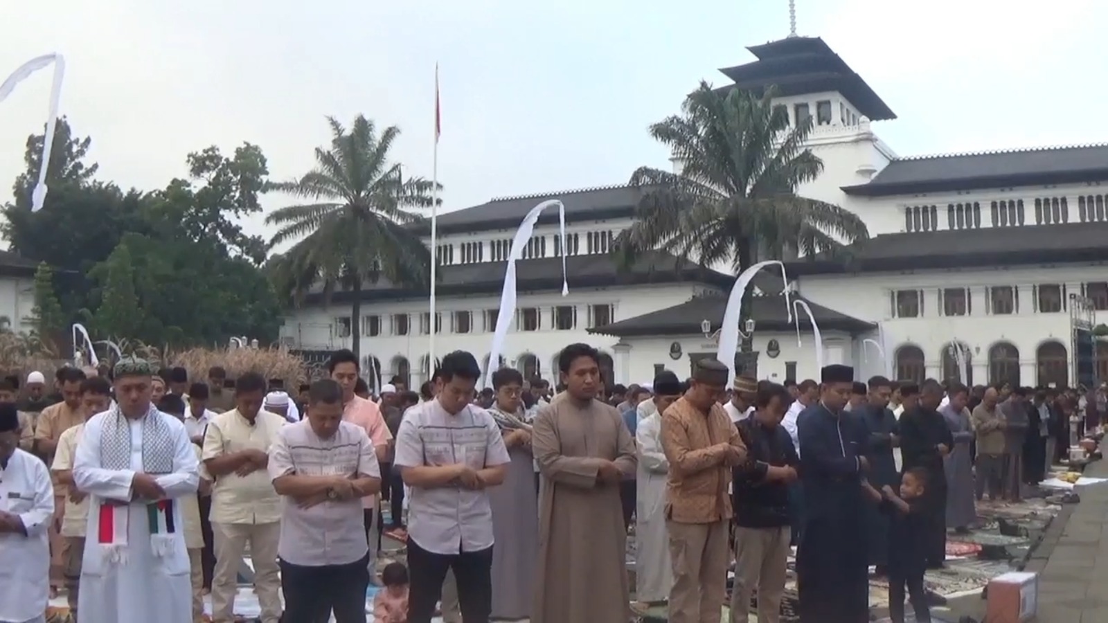 Pemerintah Provinsi Jawa Barat menggelar Salat Idulfitri di halaman Gedung Sate, Kota Bandung, pada Sabtu 21 Maret 2026 pagi. Pelaksanaan Salat Id ini diikuti ribuan jemaah dari berbagai daerah di Indonesia dan berlangsung khidmat.