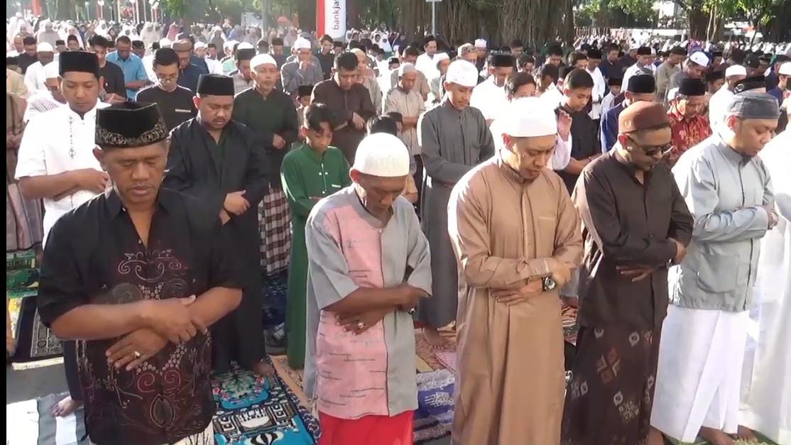 Sejak pagi, warga berduyun-duyun menuju masjid terbesar di Kota Malang. Suasana penuh khusyuk terlihat selama salat berlangsung.