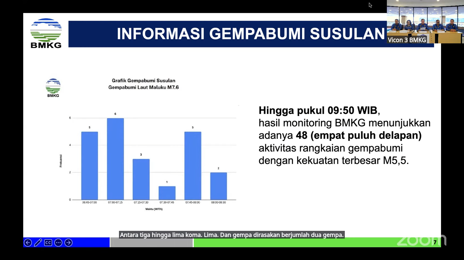 Hingga pukul 09.50 WIB, BMKG mencatat telah terjadi 48 gempa susulan dengan magnitudo terbesar 5,5. BMKG memperkirakan gempa susulan masih berpotensi terjadi dalam beberapa hari ke depan.