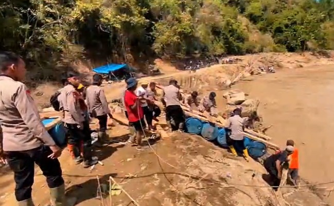 Polres Aceh Tengah dan BKO Brimob Polda Aceh Bangun 7 Jembatan Darurat di Wilayah Terisolir