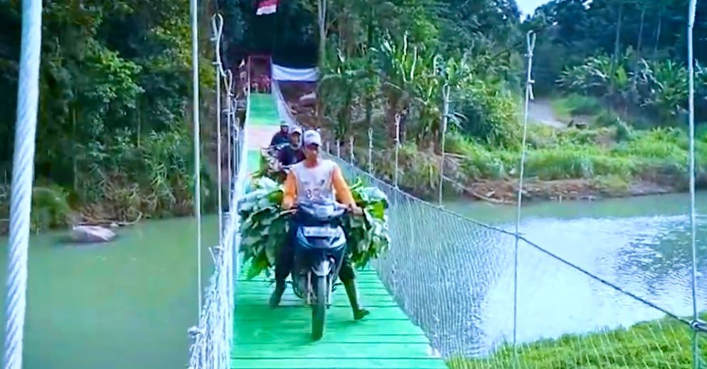 TNI Angkatan Darat (AD) menuntaskan pembangunan jembatan gantung di atas Sungai Way Umbar, Desa Pekon Umbar, Kabupaten Tanggamus, Lampung. Jembatan ini menjadi akses vital bagi warga yang selama bertahun-tahun harus menyeberangi sungai tanpa sarana yang memadai.