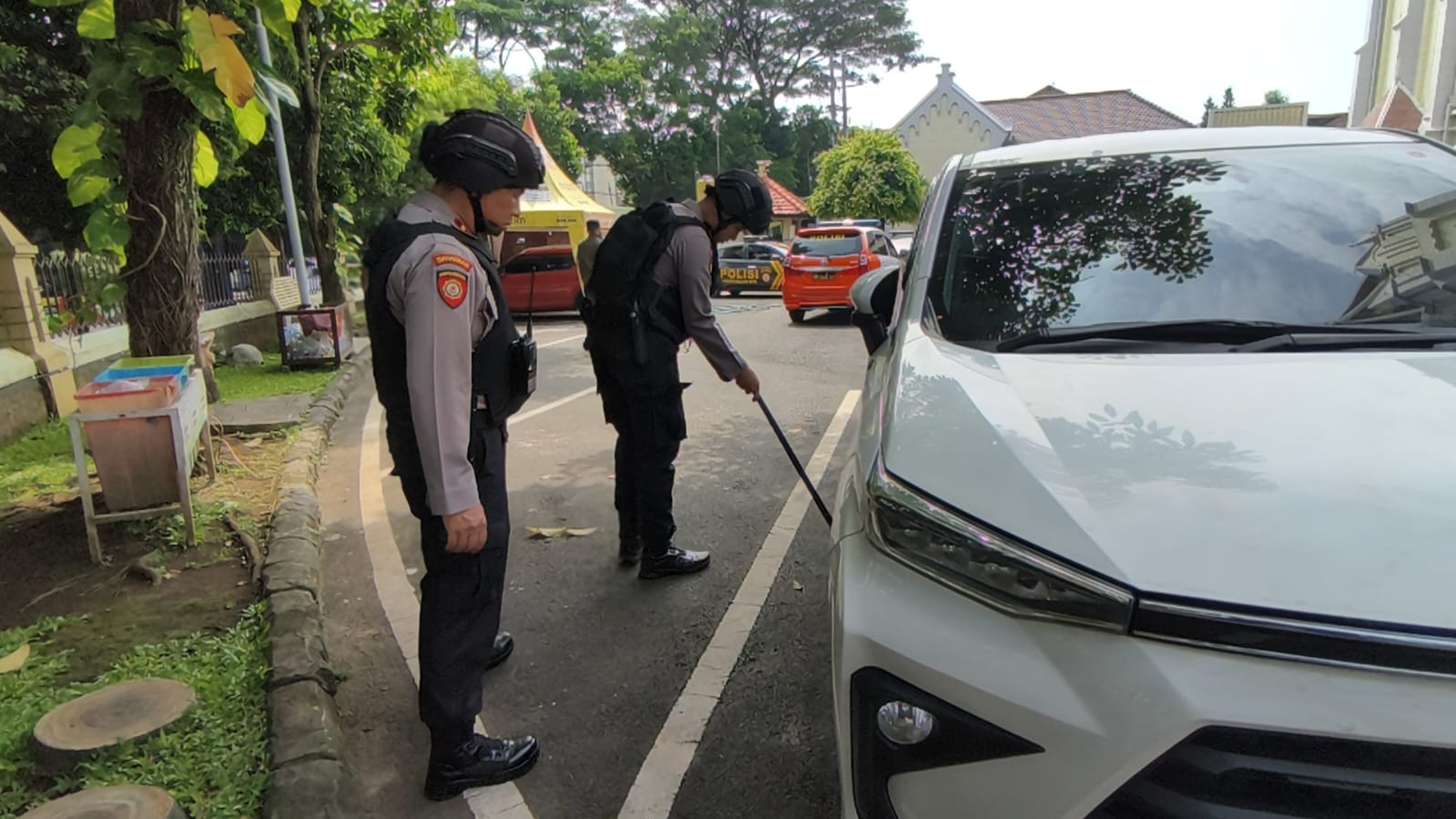 Personel Satsamapta bersama Unit K-9 menyisir seluruh area gereja, mulai dari ruang ibadah, altar, hingga area parkir.