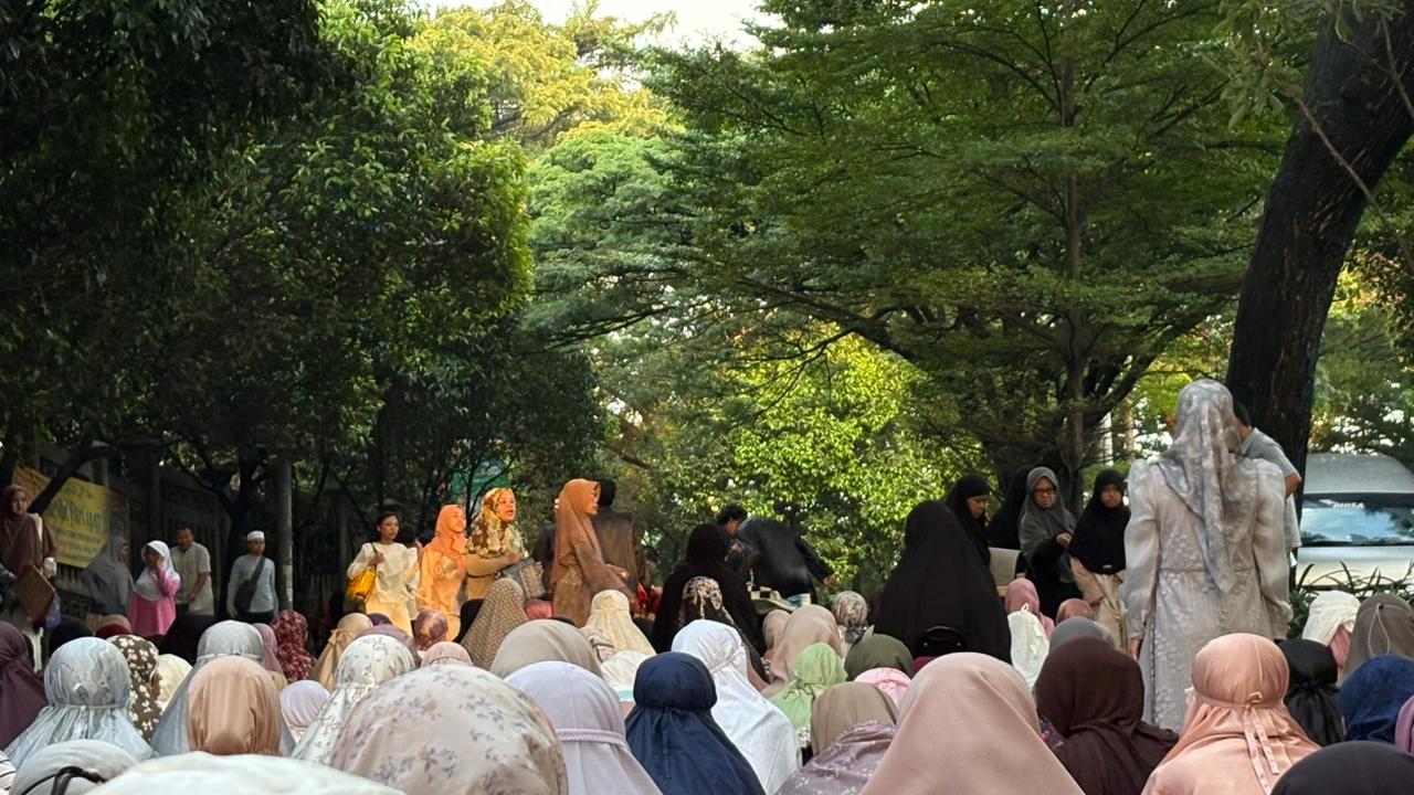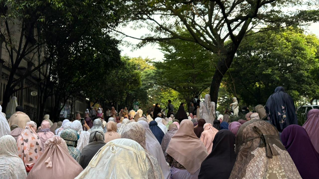 Foto: Suasana masyarakat saat ingin menjalani Solat Id Idulfitri 1447 Hijriah di Jl. Juanda, Depok (TVRINews/Nirmala Hanifah)