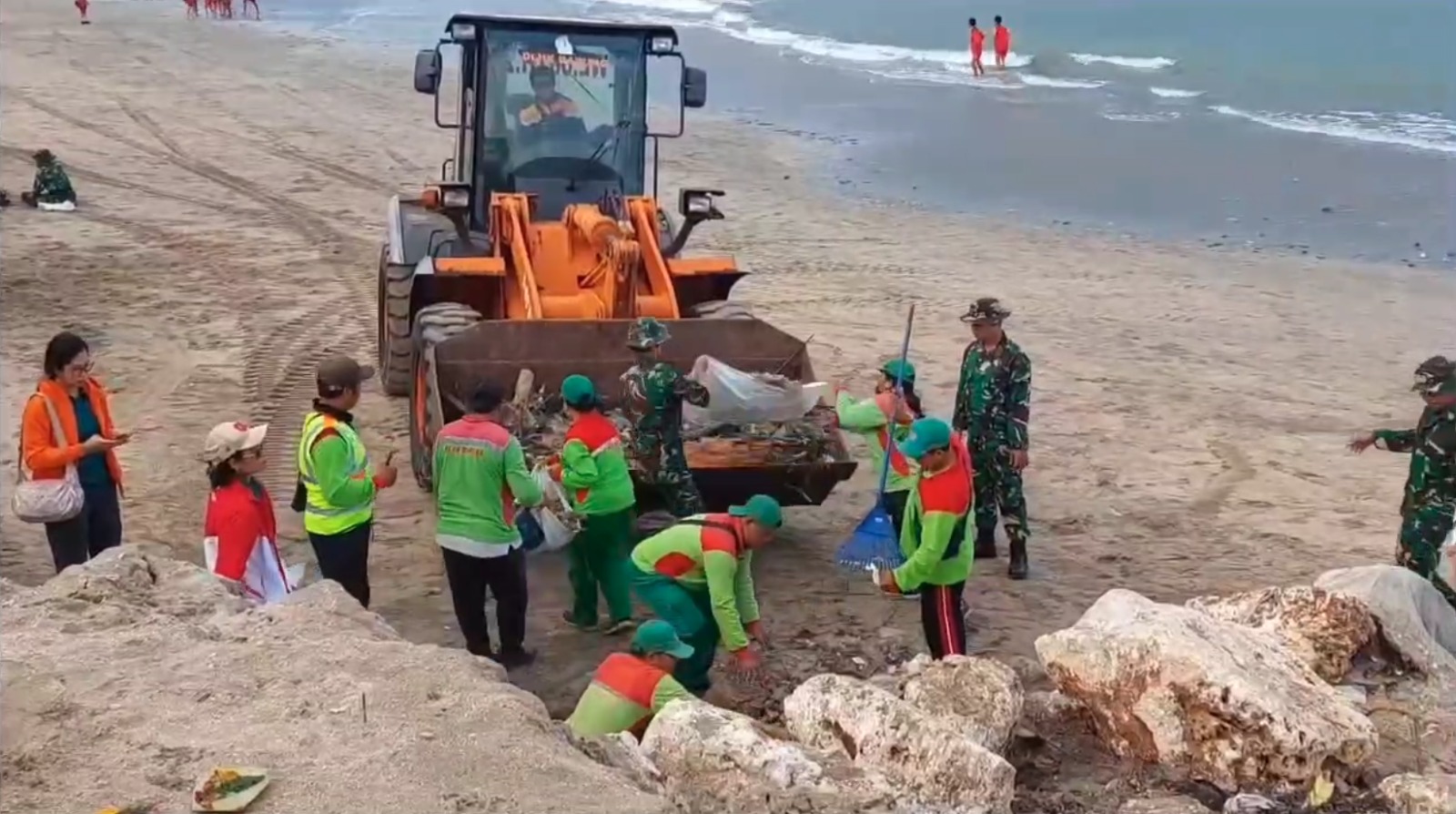 Aksi gotong royong terpadu dilakukan di sepanjang garis pantai. Selain pengerahan ratusan relawan dan aparatur negara, sejumlah alat berat juga dioperasikan untuk mempercepat evakuasi sampah bervolume besar yang menumpuk di area pasir.