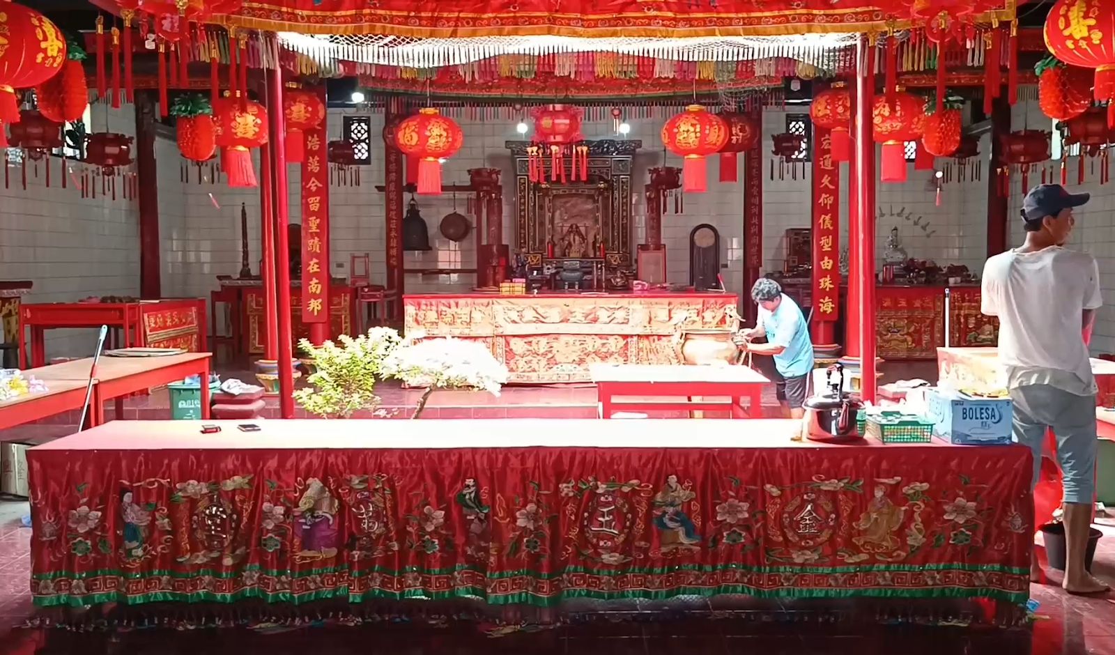 Area utama hingga halaman kelenteng mulai dibersihkan. Ornamen khas Imlek, seperti lampion dan hiasan bernuansa merah, perlahan disiapkan untuk dipasang.