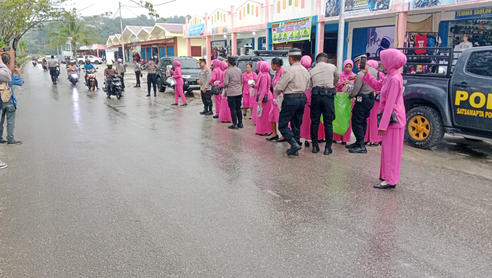 Dalam aksi tersebut, personel Sat Samapta dan anggota Bhayangkari turun langsung ke jalan untuk membagikan paket takjil kepada warga serta pengendara yang melintas menjelang waktu berbuka puasa. Sebanyak puluhan paket takjil dibagikan kepada masyarakat yang sedang menjalankan ibadah puasa Ramadan.