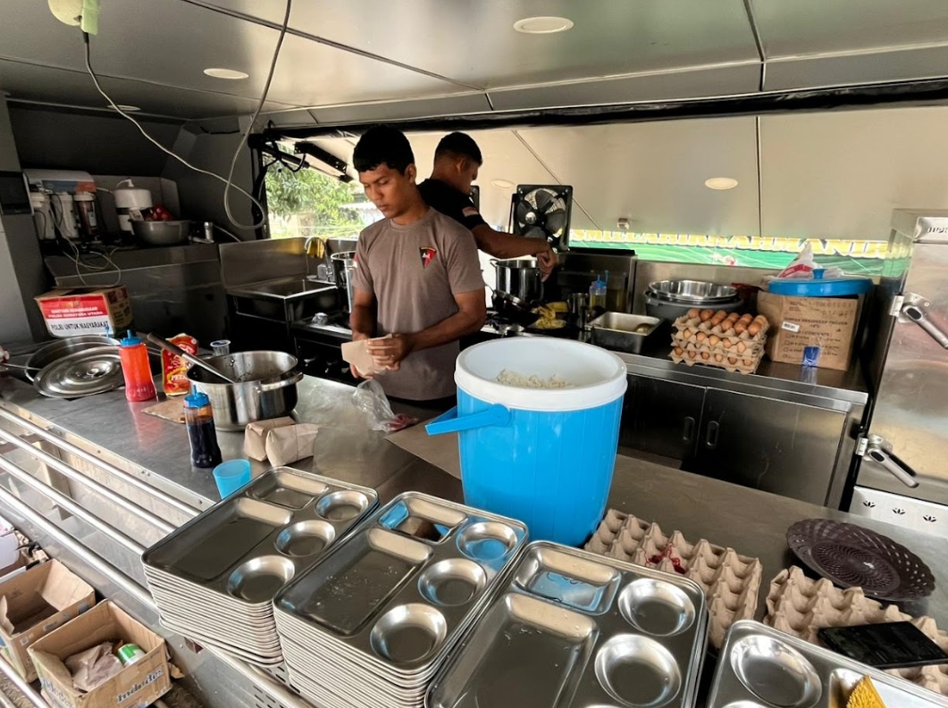 Di lokasi-lokasi tersebut, personel Brimob bahu-membahu menyiapkan makanan. Ada yang mengupas telur rebus, merebus sayuran, hingga memasak dengan memanfaatkan kayu bakar. Sementara personel lainnya berjaga di meja saji untuk melayani warga serta mencuci peralatan dapur agar operasional tetap berjalan lancar.