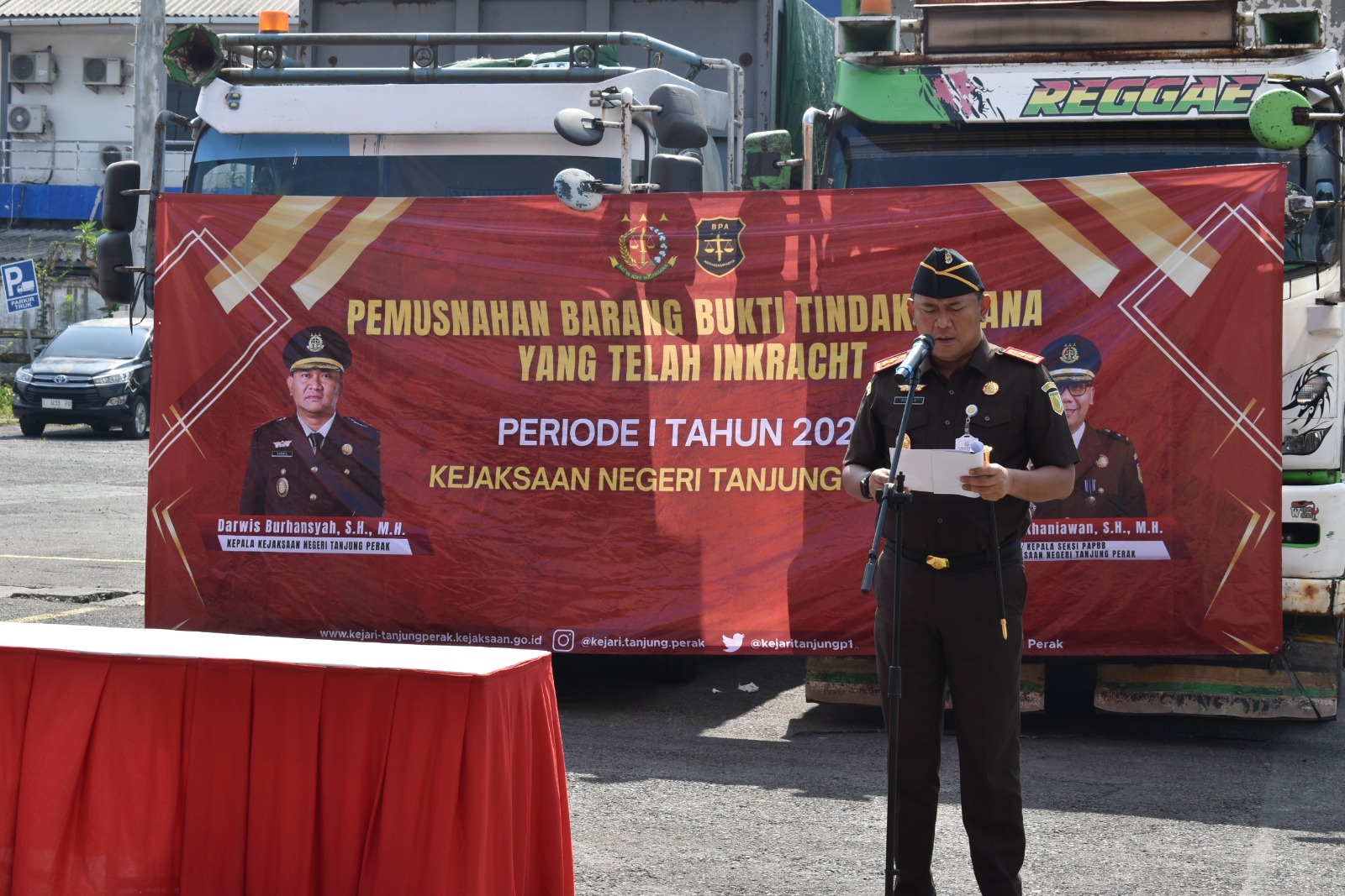 Kepala Kejari Tanjung Perak, Darwis Burhansyah, memimpin langsung pemusnahan 2.000 sak pupuk ilegal di area PT LEWIND, Dusun Krajan, Kecamatan Sukorejo, Kabupaten Pasuruan, Selasa 7 April 2026. Barang bukti setara 100 ton itu diberangkatkan dari Terminal Mirah Pelabuhan Tanjung Perak menggunakan empat truk.