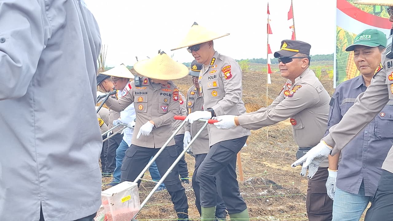 Polda Kalimantan Barat bersama PTPN IV Regional V Kecamatan Kembayan melakukan penanaman jagung hibrida kuartal II tahun 2026 pada lahan seluas 2 hektare.