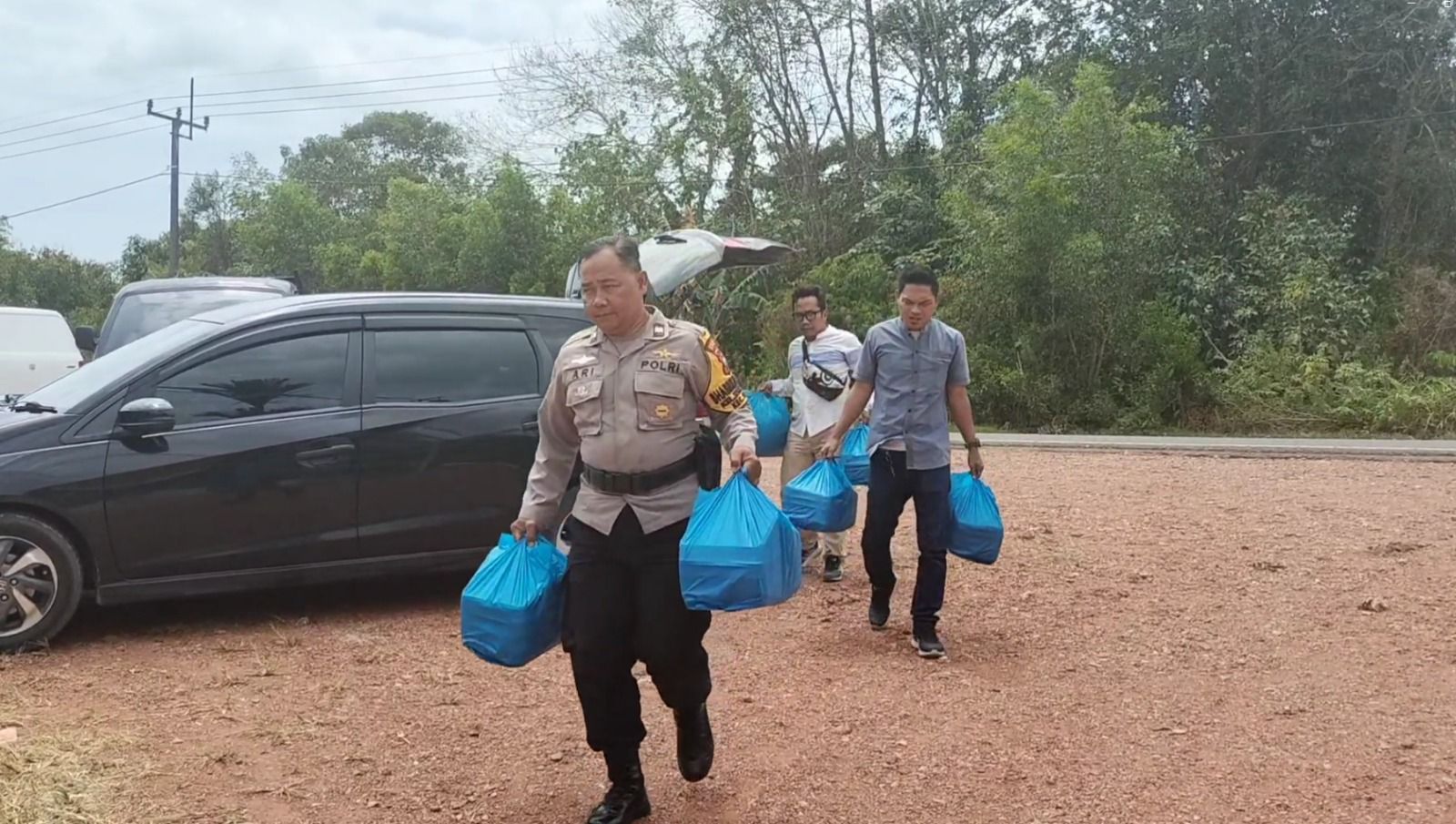 Jurnalis di Kota Batam bersama jajaran kepolisian kembali menggelar aksi sosial dengan membagikan 250 paket nasi berkah kepada masyarakat di kawasan pesisir Pulau Rempang.