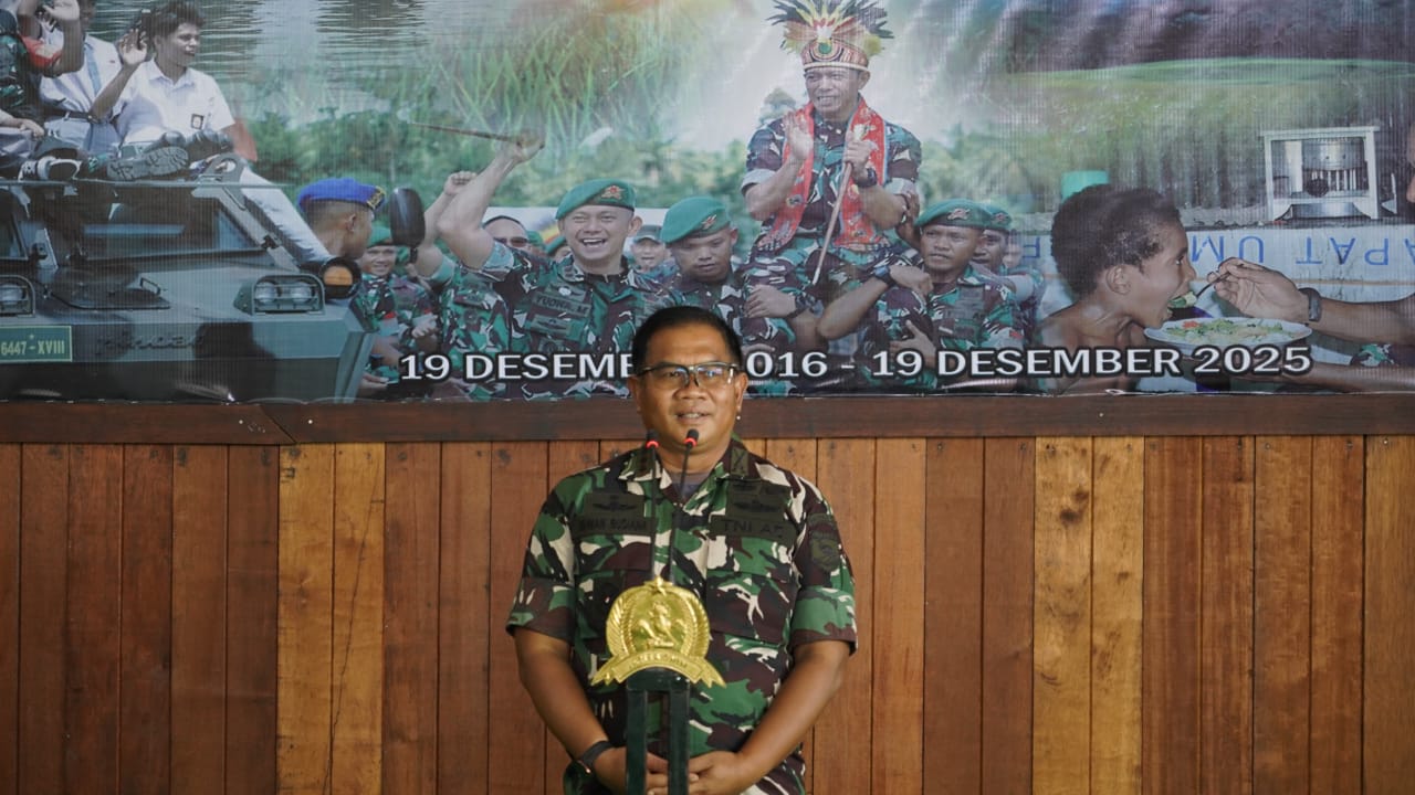 Korem 182/JO menggelar syukuran Hari Ulang Tahun (HUT) Kodam XVIII/Kasuari melalui acara makan bersama di Aula GSG Makorem 182/JO, Kampung Kiat, Distrik Fakfak, Jumat (19/12/2025). Kegiatan ini berlangsung penuh kehangatan dan kekeluargaan.