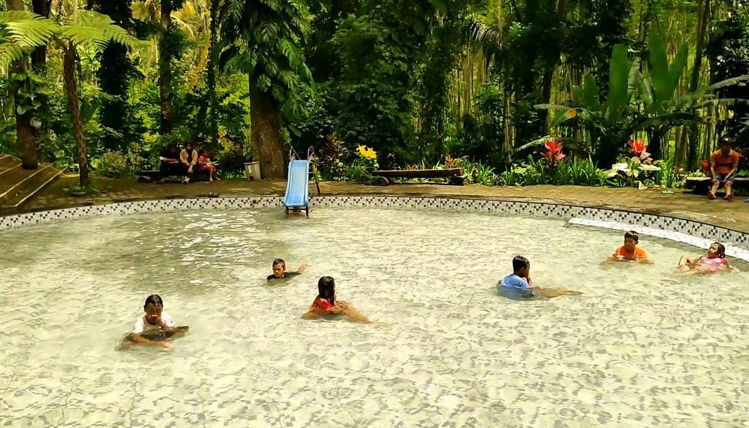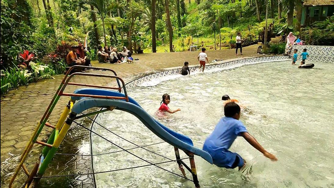 Air dalam kolam yang ada di tempat wisata ini mengalir langsung dari sumber mata air alami. Hal inilah yang membuat anak-anak merasa senang hingga betah mandi berlama-lama karena airnya yang jernih dan segar.